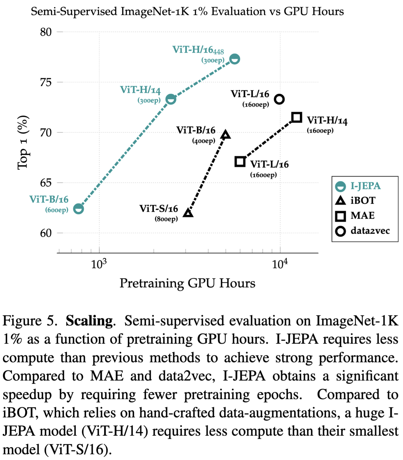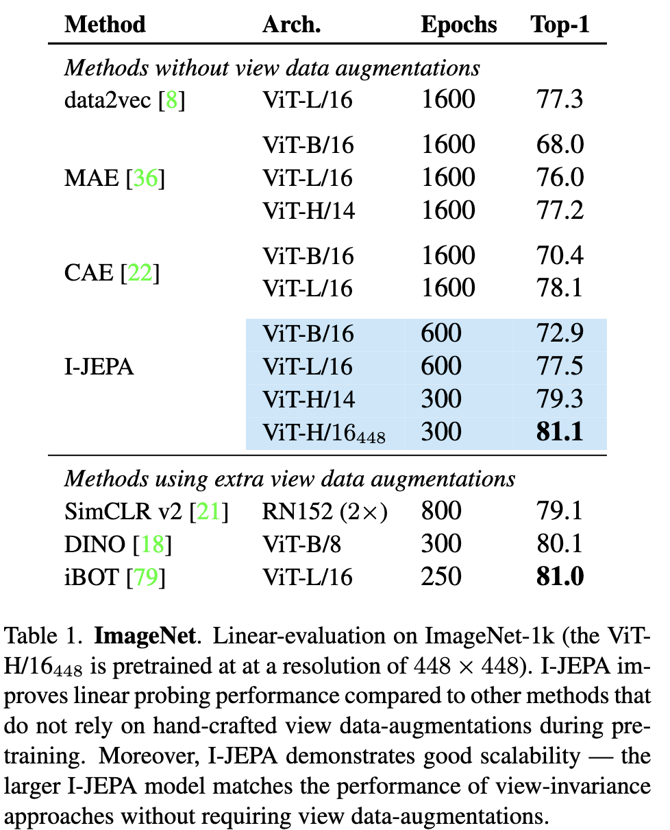 - I-JEPA는 scalable하고 효율적인다.